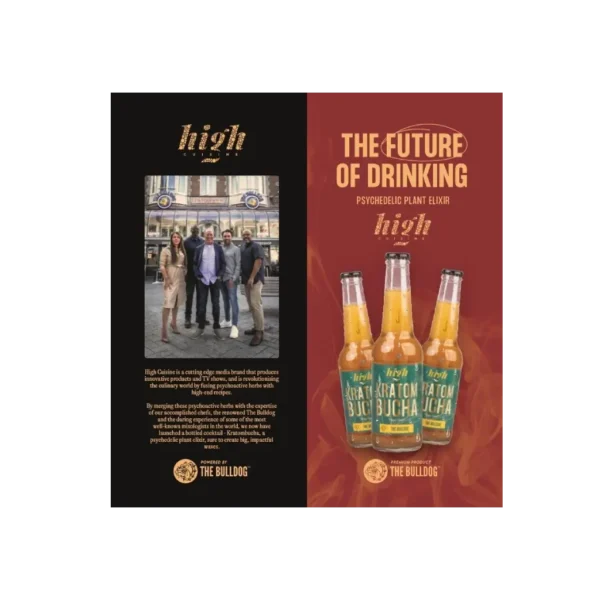 The Bulldog en High Cuisine have worked together to create a drink that is unique in every way. The taste and potency of kratom have been balanced to find the perfect balance between a smooth taste and a great, euphoric feeling.
